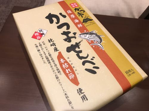 カツオ節だけでなく、お出汁の教室(海外からもいらっしゃるそう) や、カツオを使ったお土産も作っているそうで…実は、買おうと思ってやめたおせんべいが中原水産が作っているものだと判明…。